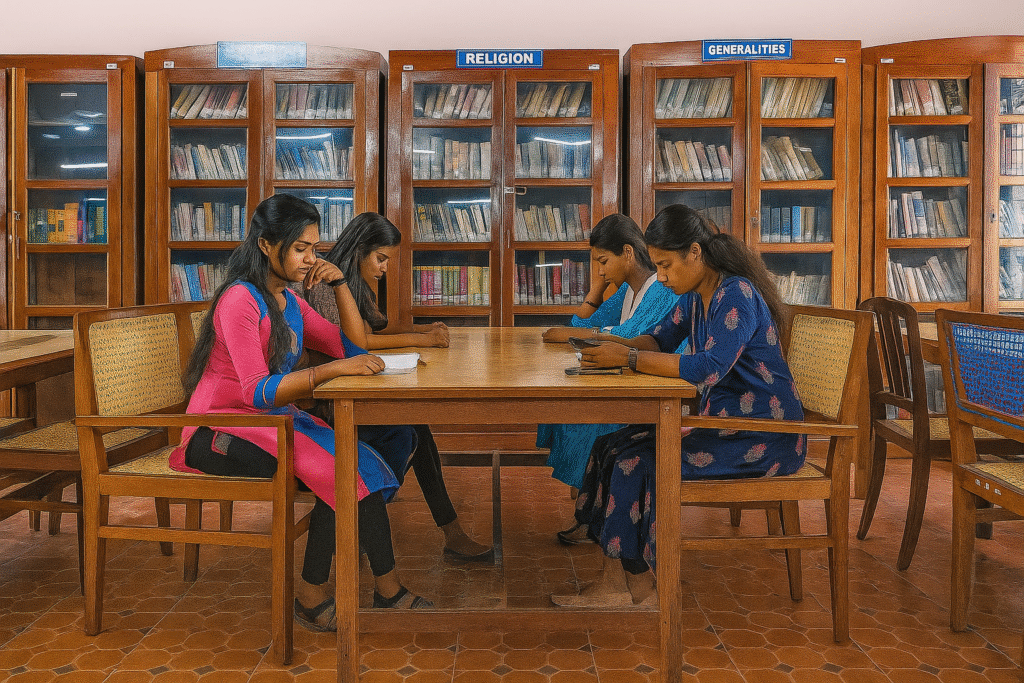 The Library is a vital part of Mahabodhi Mahavidyalaya, serving as a hub of knowledge and inspiration. It houses an extensive collection of books, journals, periodicals, and digital resources that support a wide range of academic disciplines. With its peaceful environment, comfortable seating, and access to digital catalogues and online databases, the library encourages focused study and research. Students are also inspired to explore their creativity through story and poetry writing. Regular reading sessions, book exhibitions, and literary activities further nurture curiosity, imagination, and a lifelong love for learning